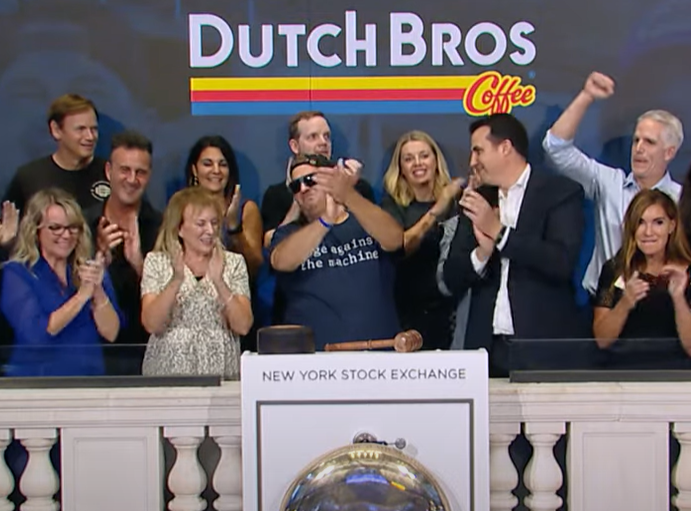 Dutch Bros picked Rebel as the name of their iced energy drink brand. Rebel adequately captures their spirit of fun and the pride they have in being different. Get a load of the team ringing the bell at the NYSE: