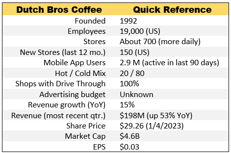The company is also executing high growth and high quality every day in boring, predictable, non-rebellious ways. I suspect the Dutch Bros new employee onboarding process turns these contrasting elements into their own definition of rebel.